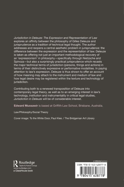 Jurisdiction in Deleuze: The Expression and Representation of Law pursues an emerging interest in the conceptual thematic of jurisdiction within legal studies; as it maintains that an adequate understanding of the power of law requires an attention, not just to law's formal aspects, but to its technology, its institution and its instrumentality; not just to the representation of law, but to its expression.