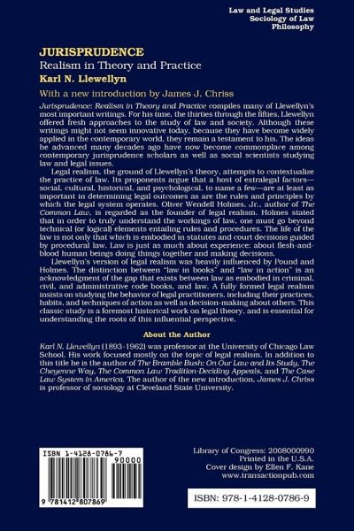 Jurisprudence: Realism in Theory and Practice compiles many of Llewellyn's most important writings. For his time, the thirties through the fifties, Llewellyn offered fresh approaches to the study of law and society. Although these writings might not seem innovative today, because they have become widely applied in the contemporary world, they remain a testament to his. The ideas he advanced many decades ago have now become commonplace among contemporary jurisprudence scholars as well as social scientists studying law and legal issues.Legal realism, the ground of Llewellyn's theory, attempts to contextualize the practice of law. Its proponents argue that a host of extra-legal factors--social, cultural, historical, and psychological, to name a few--are at least as important in determining legal outcomes as are the rules and principles by which the legal system operates. Oliver Wendell Holmes, Jr., book, The Common Law, is regarded as the founder of legal realism. Holmes stated that in order to truly understand the workings of law, one must go beyond technical (or logical) elements entailing rules and procedures. The life of the law is not only that which is embodied in statutes and court decisions guided by procedural law. Law is just as much about experience: about flesh-and-blood human beings doings things together and making decisions.Llewellyn's version of legal realism was heavily influenced by Pound and Holmes. The distinction between "law in books" and "law in action" is an acknowledgement of the gap that exists between law as embodied in criminal, civil, and administrative code books, and law. A fully formed legal realism insists on studying the behavior of legal practitioners, including their practices, habits, and techniques of action as well as decision-making about others. This classic studyis a foremosthistorical work on legal theory, and is essential for understanding the roots of this influential perspective.