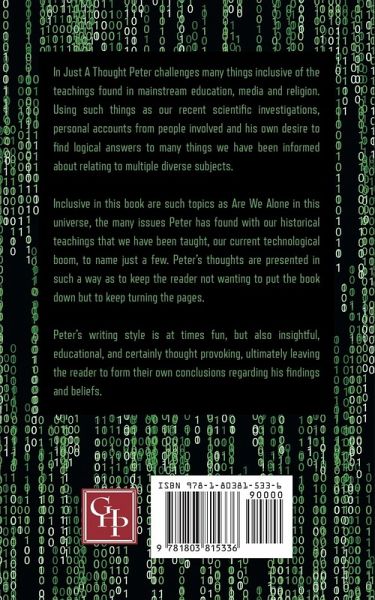 This book is a diverse read offering chapters covering multiple subjects, but all linked into the same theme. It explores many of the things we have been misinformed about in mainstream media, education and religion. A chapter by chapter in depth look at various subjects that challenge what we think we know. It ultimately proposes an alternative way of thinking, and assessing what we have all been informed of through different platforms. The book explores the author and some of the key things that have affected his life, guiding him to this point now where he wants to share some of his experiences. This includes his love of spirituality and the guidance that has been provided to him throughout his life. It's an often-humorous story with honest snippets from youth through to adulthood. It explores all the good and bad aspects of the human experience and his acceptance that it is all part of the journey. The second chapter covers our recent technological boom. This explores the authors thoughts on how we have progressed so quickly over the last 100 years with a thought-provoking challenge as an explanation. A look at our history and all the many holes in what we have been informed about through education and religion, that frankly do not hold up now with science- throwing curve balls into our previous understanding of our past. The chapter covers such things as structural anomalies around the world, our true origins and the various differing species of humanity that have occupied this planet, and many more issues the author has found through his investigations. Through Government disclosure and personal accounts, the next chapter looks at the subject of 'are we alone in this universe'? Starting way back in history and finishing right up to date it looks at the overwhelming evidence that would suggest we are not alone, from witness reports, abduction cases to crop circles. This chapter provides some compelling and fact-based evidence to support the authors ideas. Following on from the previous chapter the author looks at our planet and its place in the universe, covering the mind-boggling numbers that are attached to the incredible size of the known universe, and our tiny insignificant place within it. It further highlights the facts presented in the previous chapter that discusses are we truly alone in a universe that is difficult to comprehend with its true and enormous size. Moving away from historical information the author comes right up to date with a chapter about the modern world. He questions that have we really got it right? , and has life truly improved with all the stress and mental health issues being highlighted these days. An example being emails. Emails were meant to make life quicker and easier, yet in reality they have had a negative effect. Regardless of whether you work in an office or a building site, you have to factor into your daily life time to look at and respond to emails. It's something twenty-five years ago did not exist, but the world still worked, giving us something else to factor into what is not enough time in most people's day. It was
