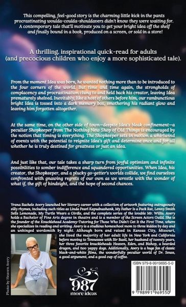 ¿ This compelling, FEEL-GOOD STORY is the charming little kick in the pants procrastinating woulda-coulda-shouldavers didn't know they were waiting for! ¿ A contemporary tale that'll MOTIVATE YOU to finally get your bright idea off the shelf! ¿ A thrilling, INSPIRATIONAL QUICK-READ for adults (and precocious children who enjoy a more sophisticated tale). (full book summary below) YOU NEED THIS BOOK IF: ¿ you're an entrepreneur with big ideas! ¿ you mistakenly think your bright idea is just an idea and have decided NOT to pursue it. ¿ you're a creative genius but could use a little motivation to finish what you started. ¿ you know a woulda-coulda-shouldaver who would benefit from this unconventional book as a gift. ¿ YOU are the woulda-coulda-shouldaver who would benefit from this unconventional book as a gift to yourself! ¿ you're looking for a fresh, new, and innovative gift idea for a graduation, birthday, new career launch, or retirement. ¿ you're a recent high school or college graduate on the brink of grabbing life by the horns as you embark upon the untested, uncertified, unapproved, and unsupervised crash course of Adulting 101. ¿ you play a vital role in influencing creative young minds. ¿ you have a brilliant spouse or significant other with many bright ideas who is stuck in an unfulfilling or dead-end job. ¿ you have to think of a reason NOT to buy this book. ¿ you were intrigued enough to actually read this entire list. (What are you waiting for?) ¿ OWN YOUR COPY TODAY! (and grab one for a friend!) BOOK SUMMARY From the moment Idea was born, he wanted nothing more than to be introduced to the four corners of the world. But time and time again, the strongholds of complacency and procrastination clung to and held back his creator, leaving Idea prematurely shelved. Inevitably, like a host of others before him, our rambunctious bright Idea is tossed into a dark memory box, smothering his radiant glow and leaving him forgotten altogether. At the same time, on the other side of town-despite Idea's bleak confinement-a peculiar Shopkeeper from The Nothing New Shop of Old Things is encouraged by the notion that timing is everything. The Shopkeeper sets in motion a whirlwind of events with the potential to reignite Idea's gift and determine once and for all whether he is truly destined for greatness or just an idea. And just like that, our tale takes a sharp turn from joyful optimism and infinite possibilities to somber indifference and squandered opportunities. When Idea, his creator, the Shopkeeper, and a plucky go-getter's worlds collide, we find ourselves confronted with gnawing regrets of our own as we wrestle with the wonder of what if, the gift of hindsight, and the hope of second chances. ¿ WARNING!! Do NOT place this book on the shelf!