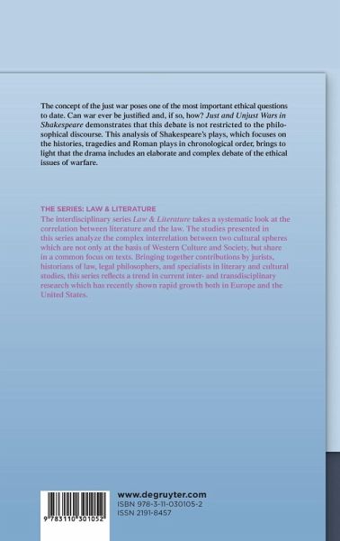 The concept of the just war poses one of the most important ethical questions to date. Can war ever be justified and, if so, how? When is a cause of war proportional to its costs and who must be held responsible? The monograph Just and Unjust Wars in Shakespeare demonstrates that the necessary moral evaluation of these questions is not restricted to the philosophical moral and political discourse. This analysis of Shakespeare's plays, which focuses on the histories, tragedies and Roman plays in chronological order, brings to light that the drama includes an elaborate and complex debate of the ethical issues of warfare. The plays that feature in this analysis range from Henry VI to Coriolanus and they are analysed according to the three Aquinian principles of legitimate authority, just cause and right intention. Also extending the principles of analysis to more modern notions of responsibility, proportionality and the jus in bello-presupposition, this monograph shows that justwar theory constitutes a dominant theoretical approach to war in the Shakespearean canon.