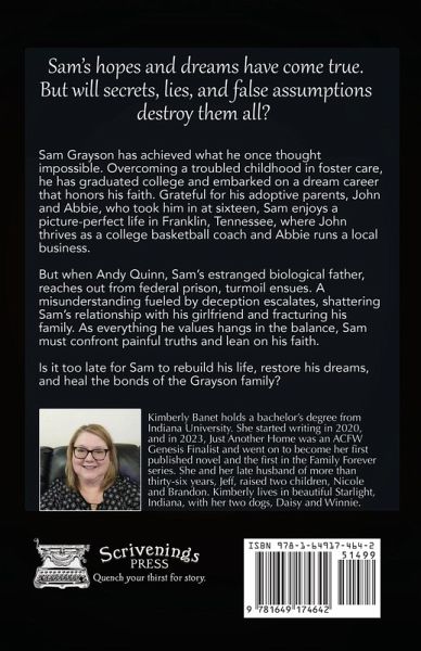 Sam Grayson has achieved what he once thought impossible. Overcoming a troubled childhood in foster care, he has graduated college and embarked on a dream career that honors his faith. Grateful for his adoptive parents, John and Abbie, who took him in at sixteen, Sam enjoys a picture-perfect life in Franklin, Tennessee, where John thrives as a college basketball coach and Abbie runs a local business. But when Andy Quinn, Sam's estranged biological father, reaches out from federal prison, turmoil ensues. A misunderstanding fueled by deception escalates, shattering Sam's relationship with his girlfriend and fracturing his family. As everything he values hangs in the balance, Sam must confront painful truths and lean on his faith. Is it too late for Sam to rebuild his life, restore his dreams, and heal the bonds of the Grayson family?