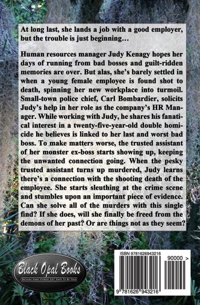 At long last, she lands a job with a good employer, but the trouble is just beginning... Human resources manager Judy Kenagy hopes her days of running from bad bosses and guilt-ridden memories are over. But alas, she's barely settled in when a young female employee is found shot to death, spinning her new workplace into turmoil. Small-town police chief, Carl Bombardier solicits Judy's help in her role as the company's HR Manager. While working with Judy, he shares his fanatical interest in a twenty-five-year-old double homicide he believes is linked to her last and worst bad boss. To make matters worse, the trusted assistant of her monster ex-boss starts showing up, keeping the unwanted connection going. When the pesky trusted assistant turns up murdered, Judy learns there's a connection with the shooting death of the employee. She starts sleuthing at the crime scene and stumbles upon an important piece of evidence. Can she solve all of the murders with this single find? If she does, will she finally be freed from the demons of her past? Or are things not as they seem?