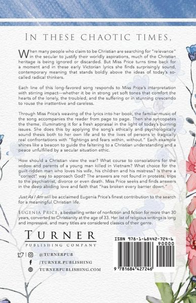 In these chaotic times, when many people who claim to be Christian are searching for "relevance" in the secular to justify their worldly aspirations, much of the Christian heritage is being ignored or discarded. But Miss Price turns time back for a moment and in these early Victorian lyrics she finds surprisingly sound, contemporary meaning that stands boldly above the ideas of today's so-called radical thinkers. Each line of this long-favored song responds to Miss Price's interpretation with stirring impact-whether it be in strong yet soft tones that comfort the hearts of the lonely, the troubled, and the suffering or in stunning crescendo to rouse the inattentive and careless. Through Miss Price's weaving of the lyrics into her book, Just As I Am, the familiar music of the song accompanies the reader from page to page. Then she syncopates the theme, illuminating it for a fresh appraisal in the light of today's burning issues. She does this by applying the song's ethically and psychologically sound thesis both to her own life and to the lives of persons in tragically real confrontations with "fightings and fears within, without." Each example shines like a beacon to guide the faltering to a Christian understanding and a peace unfulfilled by a secular situation ethic. How should a Christian view the war? What course to consolations for the widow and parents of a young man killed in Vietnam? What choice for the guilt-ridden man who loves his wife, his children and his mistress? Is there a "correct" way to approach God? The answers are not found in protests, trips to the psychiatrist, divorce or even death. Miss Price seeks and finds answers in the deep abiding love and faith that "has broken every barrier down." Just As I Am will be acclaimed Eugenia Price's finest contribution to the search for a meaningful Christian life.