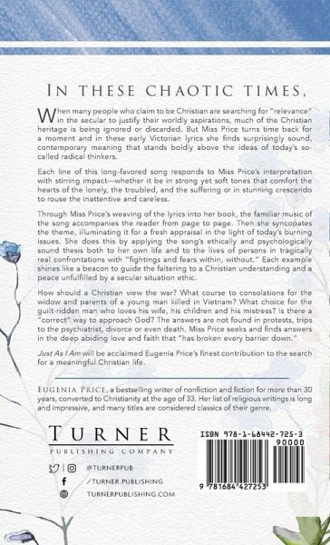 In these chaotic times, when many people who claim to be Christian are searching for "relevance" in the secular to justify their worldly aspirations, much of the Christian heritage is being ignored or discarded. But Miss Price turns time back for a moment and in these early Victorian lyrics she finds surprisingly sound, contemporary meaning that stands boldly above the ideas of today's so-called radical thinkers. Each line of this long-favored song responds to Miss Price's interpretation with stirring impact-whether it be in strong yet soft tones that comfort the hearts of the lonely, the troubled, and the suffering or in stunning crescendo to rouse the inattentive and careless. Through Miss Price's weaving of the lyrics into her book, Just As I Am, the familiar music of the song accompanies the reader from page to page. Then she syncopates the theme, illuminating it for a fresh appraisal in the light of today's burning issues. She does this by applying the song's ethically and psychologically sound thesis both to her own life and to the lives of persons in tragically real confrontations with "fightings and fears within, without." Each example shines like a beacon to guide the faltering to a Christian understanding and a peace unfulfilled by a secular situation ethic. How should a Christian view the war? What course to consolations for the widow and parents of a young man killed in Vietnam? What choice for the guilt-ridden man who loves his wife, his children and his mistress? Is there a "correct" way to approach God? The answers are not found in protests, trips to the psychiatrist, divorce or even death. Miss Price seeks and finds answers in the deep abiding love and faith that "has broken every barrier down." Just As I Am will be acclaimed Eugenia Price's finest contribution to the search for a meaningful Christian life.