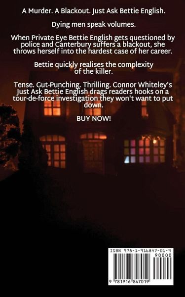 A Murder. A Blackout. Just Ask Bettie English. Dying men speak volumes. When Private Eye Bettie English gets questioned by police and Canterbury suffers a blackout, she throws herself into the hardest case of her career. Bettie quickly realises the complexity of the killer. Tense. Gut-Punching. Thrilling. Connor Whiteley's Just Ask Bettie English drags readers hooks on a tour-de-force investigation they won't want to put down. BUY NOW!