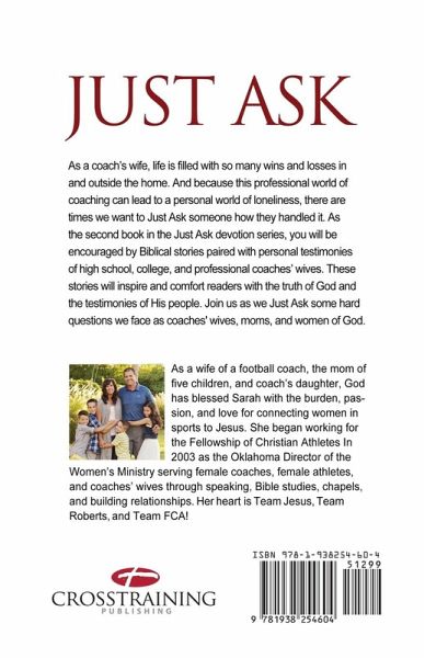 As a wife of a coach, life is filled with so many wins and losses in and outside the home. And because this professional world of coaching can lead to a personal world of loneliness, there are times we want to Just Ask someone how they handled it. As the second book in the Just Ask devotion series, you will be encouraged by Biblical stories paired with personal testimonies of high school, college, and professional coaches' wives. These stories will inspire and comfort readers with the truth of God. and the testimonies of His people. Join us as we Just Ask some hard questions we face as coaches' wives, moms, and women of God.