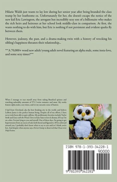 Hilarie Walsh just wants to lay low during her senior year after being branded the class tramp by her loathsome ex. Unfortunately for her, she doesn't escape the notice of the new kid Eric Lawington, the arrogant but incredibly sexy son of a billionaire who makes the rich heirs and heiresses at her school look middle-class in comparison. At first, she wants nothing to do with him, but Eric is nothing if not persistent and evident sparks fly between them. However, jealousy, the past, and a drama-making twin with a history of wrecking his sibling's happiness threaten their relationship... ***A 70,000+ word novel featuring an alpha male, some insta-love, and some sexy times!*** Excerpt: All the hardness left her face. Her eyes turned wide; her mouth stopped glowering. She looked vulnerable, like she could fall into pieces at any moment. "I don't know if I should be relieved or scared that you've stopped acting like a jerk." "Why should you be scared?" "Most of the time, guys are jerks. When they're being nice, they want something from you or are planning to break your heart." "You're so cynical." "Blame my ex." He untied the knot behind her mask. "How about I help you forget your ex?" "Trying to seduce me?" "Maybe." "Why are these masks so small?" she asked as he took off her mask. "Isn't the point of a masquerade ball to not know who anyone is?" "Not for me. I just wanted to show off my wealth." "You're a douche, but at least you're an honest one." "Unlike your ex?" She lifted the corners of her mouth. "You don't know his name, yet you already somehow know him so well." His mask fell to the bed. "May I kiss you?" "Why not?" she whispered. Closing his eyes, he put his lips on hers. From the way she moaned without pulling away from him, he could tell she enjoyed this. He then left a trail of kisses down her slender white neck, making her sigh in bliss. Christ, even her shoulders are beautiful, he thought as he pulled the straps of her dress down the smooth pale skin. She gasped as his teeth grazed the skin over her collarbone. "Want me to stop?" he breathed against her shoulder. "No," she whispered.