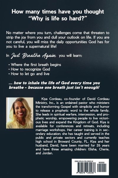 If you want to live a supernatural life every day, Just Breathe Again! In the pages of this book, you will find essential reminders to access all that God has available for you. You will discover: where the first breath begins, how to let go of life's challenges and recognize God, and how to inhale the breath of God because one breath just isn't enough.