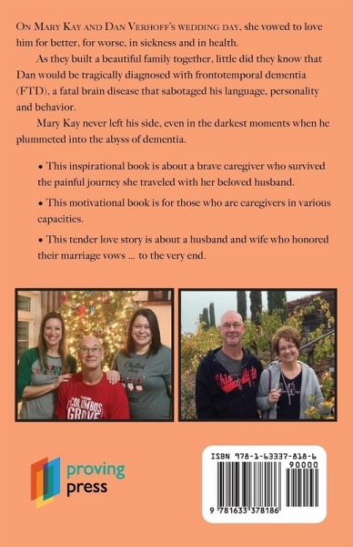 On Mary Kay and Dan Verhoff's wedding day, she vowed to love him for better, for worse, in sickness and in health. As they built a beautiful family together, little did they know that Dan would be tragically diagnosed with frontotemporal dementia (FTD), a fatal brain disease that sabotaged his language, personality and behavior. Mary Kay never left his side, even in the darkest moments when he plummeted into the abyss of dementia. ¿ This inspirational book is about a brave caregiver who survived the painful journey she traveled with her beloved husband. ¿ This motivational book is for those who are caregivers in various capacities. ¿ This tender love story is about a husband and wife who honored their marriage vows ... to the very end.