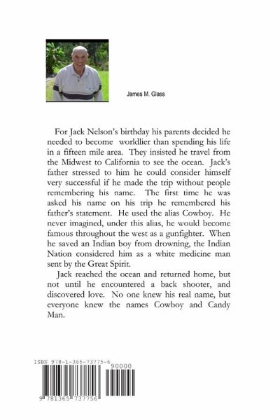 For Jack Nelson's birthday his parents decided he needed to become worldlier than spending his life in a fifteen mile area. They insisted he travel from the Midwest to California to see the ocean. Jack's father stressed to him he could consider himself very successful if he made the trip without people remembering his name. The first time he was asked his name on his trip he remembered his father's statement. He used the alias Cowboy. He never imagined, under this alias, he would become famous throughout the west as a gunfighter. When he saved an Indian boy from drowning, the Indian Nation considered him as a white medicine man sent by the Great Spirit. Jack reached the ocean and returned home, but not until he encountered a back shooter, and discovered love. No one knew his real name, but everyone knew the names Cowboy and Candy Man.