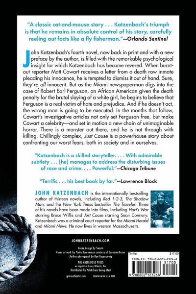John Katzenbach's fourth novel, now back in print and with a new preface from the author, is brilliantly suspenseful, filled with the remarkable psychological insight for which Katzenbach has become revered. When burnt-out reporter Matt Cowart receives a letter from a death row inmate pleading his innocence, he is tempted to dismiss it out of hand. Sure, they're all innocent. But as the Miami newspaperman digs into the case of Robert Earl Ferguson, an African American given the death penalty for the brutal slaying of a white girl, he begins to believe that Ferguson is the real victim of hate and prejudice. And if he doesn't act, the wrong man is going to be executed. In the months that follow, Cowart's investigative articles not only set Ferguson free, but make Cowart a celebrity and win him a Pulitzer Prize-and set in motion a new chain of unimaginable horror. For there is a monster out there, and he is not through with killing. Chillingly complex, Just Cause is a powerhouse story about confronting our worst fears, in society, and in ourselves.