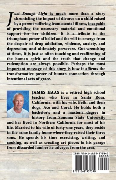 No child grows up too quickly. Children who regularly experience trauma are exposed to more than they are capable of processing. As a result, they often present a facade which falsely conveys that they are more secure and mature than they really are. The consequences of such assumptions are potentially harmful to their health, development, and well-being. Just Enough Light is much more than a story chronicling the impact of divorce on a child raised by a parent suffering from mental illness, incapable of providing the necessary material and emotional support for her children. It is a tribute to the triumphant power of belief and the will to emerge from the despair of drug addiction, violence, anxiety, and depression; and ultimately persevere. What makes this story so compelling is that it is presented from a unique perspective. As each experience unfolds from childhood through adolescence, it is presented through the mindset of the child's age at the time. Both gut-wrenching and touching, it reaffirms the resilient nature of the human spirit and the truth that change and redemption are always possible. Perhaps the most important message of this story is how it affirms the transformative power of human connection through intentional acts of grace.
