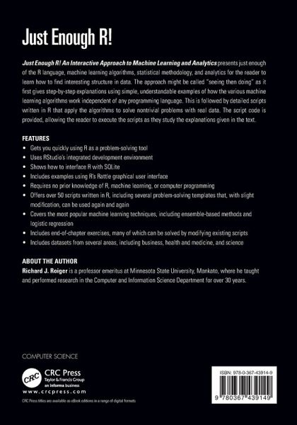The main purpose of the text is to present the student with just enough of the R language, machine learning algorithms, and statistical methodology to set them on their way to a career in data science and machine learning.It is for a beginning course in machine learning, data mining & analytics, data science, or general data analysis.