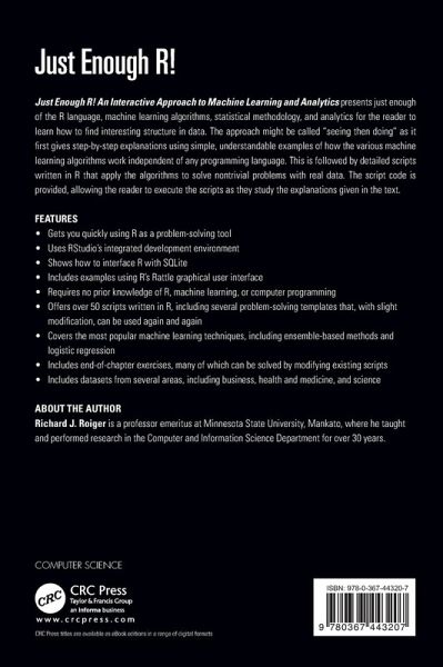 The main purpose of the text is to present the student with just enough of the R language, machine learning algorithms, and statistical methodology to set them on their way to a career in data science and machine learning.It is for a beginning course in machine learning, data mining & analytics, data science, or general data analysis.
