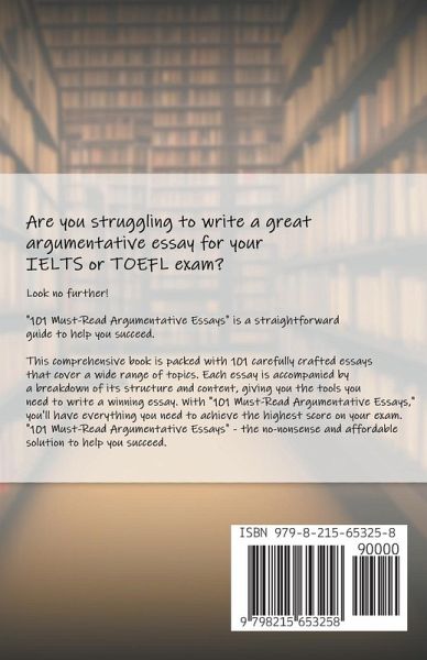 Are you struggling to write a great argumentative essay for your IELTS or TOEFL exam? Look no further! "101 Must-Read Argumentative Essays" is a straightforward guide to help you succeed. This comprehensive book is packed with 101 carefully crafted essays that cover a wide range of topics. Each essay is accompanied by a breakdown of its structure and content, giving you the tools you need to write a winning essay. With "101 Must-Read Argumentative Essays," you'll have everything you need to achieve the highest score on your exam. "101 Must-Read Argumentative Essays" - the no-nonsense and affordable solution to help you succeed.