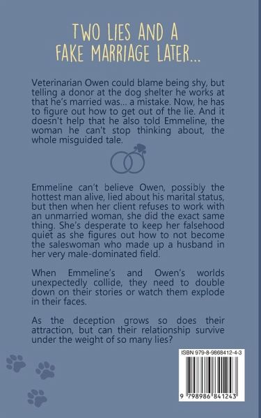 Two lies and a fake marriage later... Veterinarian Owen could blame being shy, but telling a donor at the dog shelter he works at that he's married was... a mistake. Now, he has to figure out how to get out of the lie. And it doesn't help that he also told Emmeline, the woman he can't stop thinking about, the whole misguided tale. Emmeline can't believe Owen, possibly the hottest man alive, lied about his marital status, but then when her client refuses to work with an unmarried woman, she did the exact same thing. She's desperate to keep her falsehood quiet as she figures out how to not become the saleswoman who made up a husband in her very male-dominated field. When Emmeline's and Owen's worlds unexpectedly collide, they need to double down on their stories or watch them explode in their faces. As the deception grows so does their attraction, but can their relationship survive under the weight of so many lies?