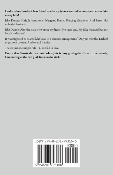 I seduced my brother's best friend to take my innocence and he convinced me to fake marry him! Jake Dunne: Sinfully handsome. Naughty. Funny. Piercing blue eyes. And kisses like nobody's business.... Jake Dunne: Also the man who broke my heart, five years ago. My fake husband but my baby's real father! It was supposed to be...well, let's call it "a business arrangement." Only six months. Each of us gets our dreams. And we call it quits. There's just one simple rule - "Don't fall in love." Except that I broke the rule. And while Jake is busy getting the divorce papers ready, I am staring at the two pink lines on the stick.