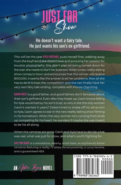 He doesn't want a fairy tale. He just wants his son's ex-girlfriend. This will be the year Kyla Mitchell puts herself first, walking away from the boyfriend she doesn't love and pursuing her passion for boudoir photography. She didn't plan on being turned down for the loan she needs to start her business. When a new reality dating show comes to town and announces that the winner will receive $100,000, it seems like the answer to all her problems. Now all she has to do is outlast the competition and she can finally have her very own fairy tale ending, complete with Prince Charming. Gavin West is a good father, and good fathers don't fantasize about their son's girlfriend. Even after they break up, Gavin knows falling for Kyla would betray his son's trust, so why is she the only woman Gavin's wanted in years? Determined to shake off his attraction to Kyla, Gavin agrees to star in the new reality dating show filming in his hometown. When the very woman he's running from ends up competing for his heart, he wonders if maybe she was meant to be his all along. When the cameras are gone, Gavin and Kyla have to decide what was real, what was just for show, and what's worth fighting for. Just for Show is a standalone, steamy, small town, ex-boyfriend's father romance featuring a reality TV show, forced proximity, a curvy heroine, and a guaranteed HEA.