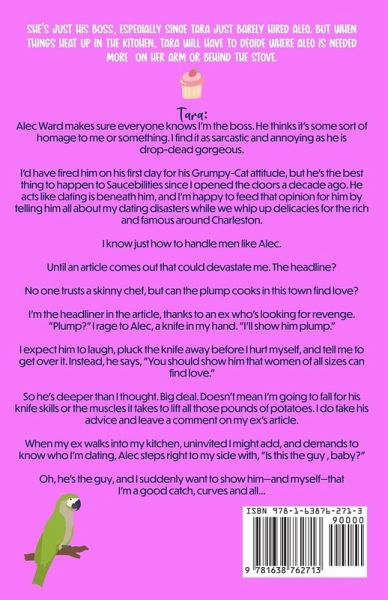 She's just his boss, especially since Tara just barely hired Alec. But when things heat up in the kitchen, Tara will have to decide where Alec is needed more-on her arm or behind the stove. Tara: Alec Ward makes sure everyone knows I'm the boss. He thinks it's some sort of homage to me or something. I find it as sarcastic and annoying as he is drop-dead gorgeous. I'd have fired him on his first day for his Grumpy-Cat attitude, but he's the best thing to happen to Saucebilities since I opened the doors a decade ago. He acts like dating is beneath him, and I'm happy to feed that opinion for him by telling him all about my dating disasters while we whip up delicacies for the rich and famous around Charleston. I know just how to handle men like Alec. Until an article comes out that could devastate me. The headline? No one trusts a skinny chef, but can the plump cooks in this town find love? I'm the headliner in the article, thanks to an ex who's looking for revenge. "Plump?" I rage to Alec, a knife in my hand. "I'll show him plump." I expect him to laugh, pluck the knife away before I hurt myself, and tell me to get over it. Instead, he says, "You should show him that women of all sizes can find love." So he's deeper than I thought. Big deal. Doesn't mean I'm going to fall for his knife skills or the muscles it takes to lift all those pounds of potatoes. I do take his advice and leave a comment on my ex's article. When my ex walks into my kitchen, uninvited I might add, and demands to know who I'm dating, Alec steps right to my side with, "Is this the guy, baby?" Oh, he's the guy, and I suddenly want to show him-and myself-that I'm a good catch, curves and all... Get ready to laugh out loud in this hilarious, sweet workplace romantic comedy! The romance is clean, the jokes witty, and the office-kitchen grump swoon-worthy. Read today!