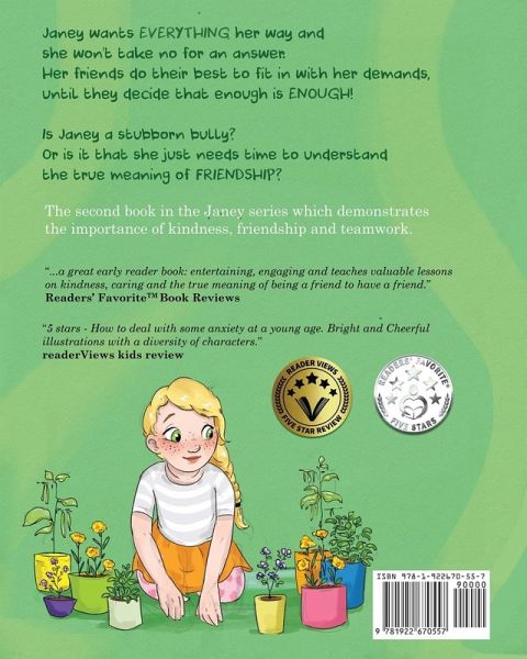 Janey wants EVERYTHING her way and she won't take no for an answer. Her friends do their best to fit in with her demands until they decide that enough is ENOUGH! Is Janey a stubborn bully? Or is it that she just needs time to understand the true meaning of FRIENDSHIP? The second book in the Janey series which demonstrates the importance of kindness, friendship and teamwork.