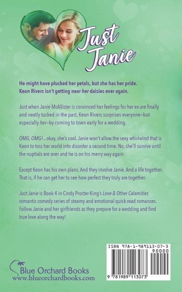 He might have plucked her petals, but she has her pride. Keon the Canadian cutie isn't getting near her daisies ever again! Enjoy this steamy and emotional summer wedding romcom from RWA Golden Heart finalist Cindy Procter-King! Is he only after a good time? Just when Janie McAllister is convinced her feelings for her ex are finally and neatly tucked in the past, Keon Rivers surprises everyone-but especially her-by coming to town early for a wedding. OMG, OMG!...okay, she's cool. Janie won't allow the sexy whirlwind that is Keon to toss her world into disorder a second time. No, she'll survive until the nuptials are over and he is on his merry way again. Except Keon has his own plans. And they involve Janie. And a life together. That is, if he can get her to see how perfect they truly are together. Book 1 - Deceiving Derek Book 2 - Catching Claire Book 3 - Before Brady Book 4 - Just Janie Book 5 - Trusting Trey