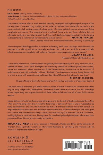 This book critically examines 'just liberal violence': forms of direct and structural violence that others may be 'justly' subjected to. Michael Neu focusses on liberal defences of torture, war and sweatshop labour respectively, and argues that (a) each of these defences fails and (b) all of them fail for similar reasons.
