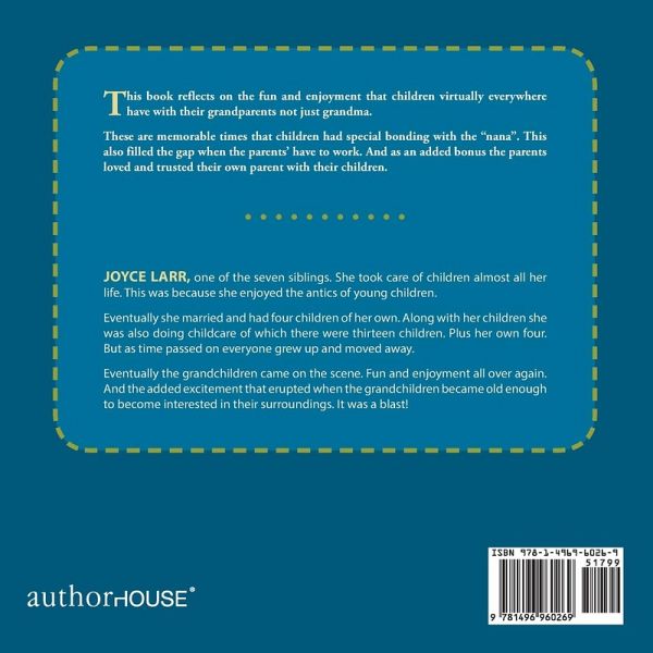 This book reflects on the fun and enjoyment that children virtually everywhere have with their grandparents not just grandma. These are memorable times that children had special bonding with the "nana". This also filled the gap when the parents' have to work. And as an added bonus the parents loved and trusted their own parent with their children.