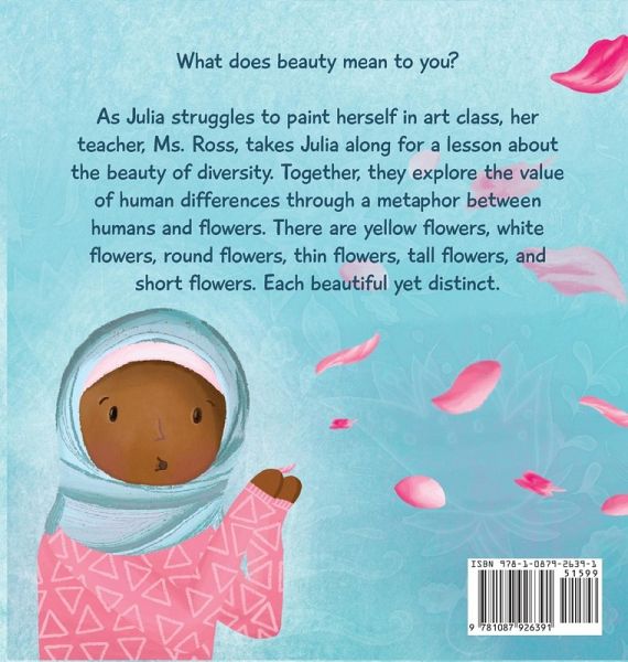 What does beauty mean to you? As Julia struggles to paint herself in art class, her teacher, Ms. Ross, takes Julia along for a lesson about the beauty of diversity. Together, they explore the value of human differences through a metaphor between humans and flowers. There are yellow flowers, white flowers, round flowers, thin flowers, tall flowers, and short flowers. Each beautiful yet distinct. This book is an unforgettable story about how human diversity truly is Just Like Flowers.