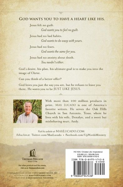 God loves you just the way you are, but he refuses to leave you there. He wants you to be just like Jesus. Jesus felt no guilt; God wants you to feel no guilt. Jesus had no bad habits; God wants to do away with yours. Jesus had no fears; God wants the same for you. God's ultimate goal is to make you into the image of Christ.