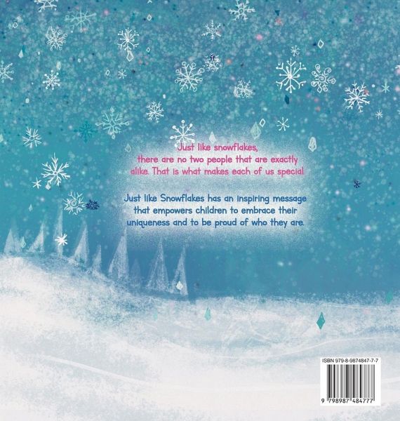 Just like snowflakes, there are no two people that are exactly alike. That is what makes each of us special. Just like Snowflakes has an inspiring message that empowers children to embrace their uniqueness and to be proud of who they are.