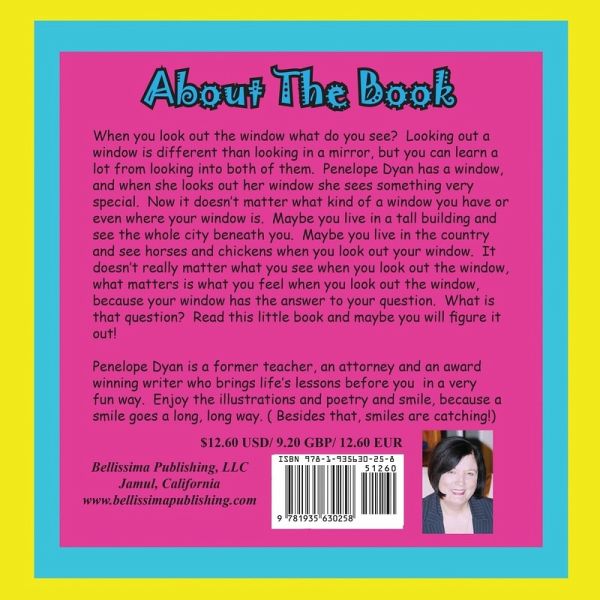 Sometimes when you go looking for answers, the answer is just outside your window. Of course, that does depend on what the question is. Penelope Dyan explores the answer to one question and finds her answer by looking just outside the window. Can you guess what the question is? If someone told you to look outside your window, then what would you see? What answers would you find. Penelope Dyan is an award winning internationally known writer and poet and a former K-12 teacher as well as an attorney, so she is used to asking lots of questions; and she is also used to looking for answers. Take a trip "Just Outside The Window' with Penelope Dyan and see what you find as you enjoy the kid-friendly illustrations and poetry that are in integral part of this fun book that Penelope Dyan wrote for her very favorite people, kids! Think about what is just outside your own window and make up a story and draw some drawings of your very own. and do it just because you can! Kids are the very best at this kind of stuff, and Dyan believes that every kid has a story inside just waiting to come out. After all, she has been writing these books since she was a kid, and when she grew up she just kept on doing the same old thing! Smile, laugh and read, and remember no one can read too many books!