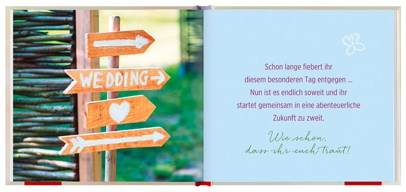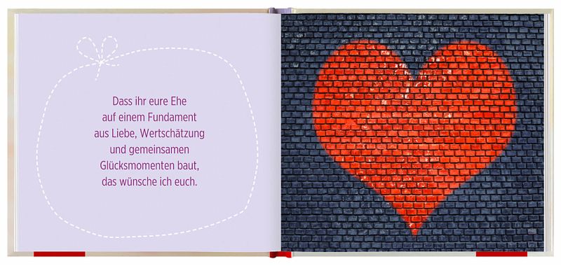 Wenn zum Geldgeschenk noch ein hübsches Mitbringsel zur Hochzeit fehlt, eine Glückwunschkarte aufgewertet werden oder einem Gemeinschaftsgeschenk ein individuelles kleines Hochzeitsgeschenk mitgegeben werden soll, dann ist Just married die perfekte Lösung: Unterhaltsame und emotionale Wünsche zur Hochzeit geben dem Brautpaar alles Gute mit auf den gemeinsamen Lebensweg - und als kleine Überraschung lässt sich ein Bündel Luftballons herausdrehen. So verwandelt sich das originelle Geschenkbuch im Handumdrehen in ein dekoratives Hochzeitsgeschenk zum Aufstellen.