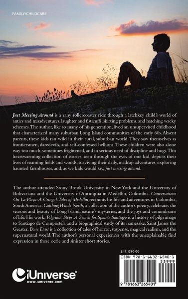 Just Messing Around is a zany rollercoaster ride through a latchkey child's world of antics and misadventures, laughter and fisticuffs, skirting problems, and hatching wacky schemes. The author, like so many of his generation, lived an unsupervised childhood that characterized many suburban Long Island communities of the early 60s. Absent parents, these kids ran wild in their rural, suburban world. They saw themselves as frontiersmen, daredevils, and self-confessed hellions. These children were also alone way too much, sometimes frightened, and in serious need of discipline and hugs. This heartwarming collection of stories, seen through the eyes of one kid, depicts their lives of roaming fields and woods, surviving their daily, madcap adventures, exploring haunted farmhouses, and, as we kids would say, just messing around.