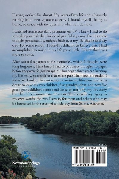 Having worked for almost fifty years of my life and ultimately retiring from two separate careers, I found myself sitting at home, obsessed with the question, what do I do now? I watched numerous daily programs on TV. I knew I had to do something or risk the chance of just fading away. During these thought processes, I wondered back over my life, day in and day out. For some reason, I found it difficult to believe that I had accomplished so much in my life yet so little. I knew there was more to come. After stumbling upon some memories, which I thought were long forgotten, I just knew I had to put those thoughts to paper before they were forgotten again. Thus began three years of writing my life story, so much so that some publishers recommended I write two books. The motivation to write my life story was also a desire to leave my two children, five grandchildren, and now five great-grandchildren some semblance of not only my life story but that of our immediate ancestors. This book is my legacy in my own words, the way I saw it, for them and others who may be interested in the story of a little boy from Selma, Alabama.