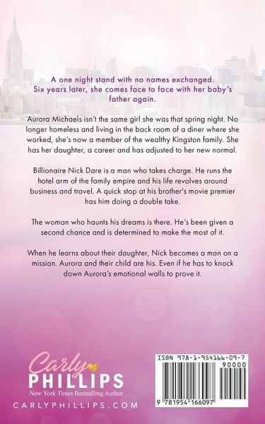 One night. No names. No expectations-but unexpected consequences. I never thought I'd see my daughter's father again, but six years later I come face to face with Nick Dare, an irresistible man with demands of his own. But I'm no longer that desperate girl sleeping in the back room of a diner. I'm part of the illustrious Kingston family, a successful businesswoman, and I'm raising a little girl who is my world. My life is steady. Controlled. Safe at last. Until Nick Dare walks back in with billionaire, boss energy. The man who once ruined me for anyone else. He wants answers and he says he wants us. But letting him in means risking everything-my heart and the life I've fought so hard to build. And Nick? He's not stopping until he has it all. *This title has been re-edited into first person point of view and has a new cover, but the story is the same as the original.