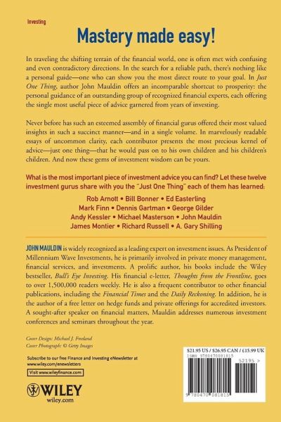 Never before has such an esteemed assembly of financial gurus offered their most valued insights in such a succinct manner-and in a single volume. In marvelously readable essays of uncommon clarity, each contributor presents the most precious kernel of advice-just one thing-that he would pass on to his own children and his children's children. And now these gems of investment wisdom can be yours.