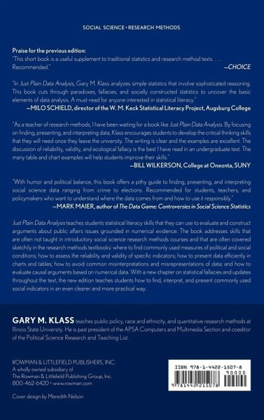 Just Plain Data Analysis is designed to teach students statistical literacy skills that they can use to evaluate and construct arguments about public affairs issues grounded in numerical evidence. With a new chapter on statistical fallacies and updates throughout the text, the new edition teaches students how to find, interpret, and present commonly used social indicators in an even clearer and more practical way.