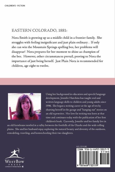 EASTERN COLORADO, 1881: Nora Smith is growing up as a middle child in a frontier family. She struggles with feeling insignificant and just plain ordinary . If only she can win the Mountain Springs spelling bee, her problems will disappear! Nora prepares for her moment to shine as champion of the bee. However, other circumstances prevail, proving to Nora the importance of just being herself. Just Plain Nora is recommended for children, age eight to twelve.