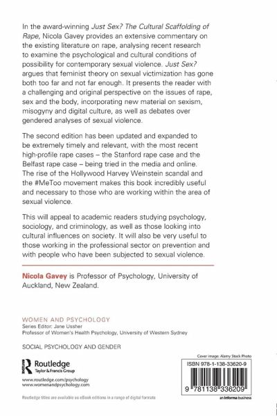 In the award-winning Just Sex? The Cultural Scaffolding of Rape, Nicola Gavey provides an extensive commentary on the existing literature on rape, analysing recent research to examine the psychological and cultural conditions of possibility for contemporary sexual violence. Just Sex? argues that feminist theory on sexual victimization has gone both too far and not far enough. It presents the reader with a challenging and original perspective on the issues of rape, sex and the body, incorporating new material on sexism, misogyny and digital culture, as well as debates over gendered analyses of sexual violence.