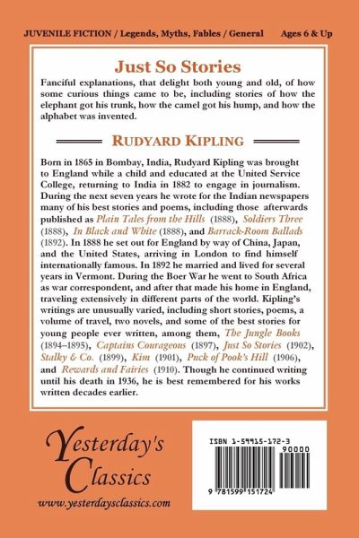 Fanciful explanations, that delight both young and old, of how some curious things came to be, including stories of how the elephant got his trunk, how the camel got his hump, and how the alphabet was invented. Suitable for ages 6 and up.