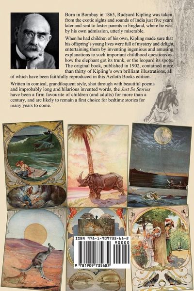 Born in Bombay in 1865, Rudyard Kipling was taken from the exotic sights and sounds of India just five years later and sent to foster parents in England, where he was by his own admission, utterly miserable. When he had children of his own, Kipling made sure that his offspring's young lives were full of mystery and delight, entertaining them by inventing ingenious and amusing explanations to such important childhood questions as how the elephant got its trunk, or the leopard its spots. The original book, published in 1902, contained more than thirty of Kipling's own brilliant illustrations, all of which have been faithfully reproduced in this Aziloth Books edition. Written in comical, grandiloquent style, shot through with beautiful poems and improbably long and hilarious invented words, the 'Just So Stories' have been a firm favourite of children (and adults) for more than a century, and are likely to remain a first choice for bedtime stories for many years to come.