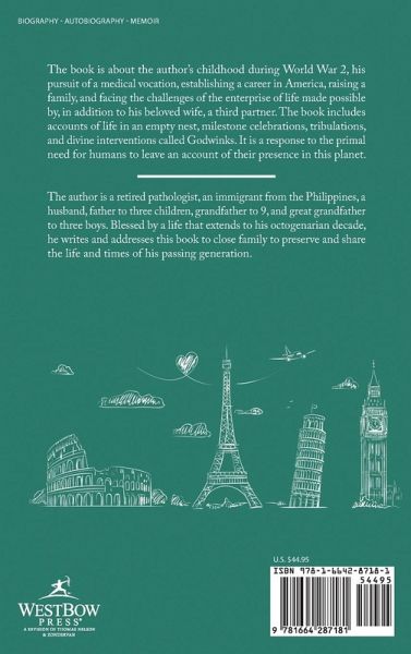 The book is about the author's childhood during World War 2, his pursuit of a medical vocation, establishing a career in America, raising a family, and facing the challenges of the enterprise of life made possible by, in addition to his beloved wife, a third partner. The book includes accounts of life in an empty nest, milestone celebrations, tribulations, and divine interventions called Godwinks. It is a response to the primal need for humans to leave an account of their presence in this planet.