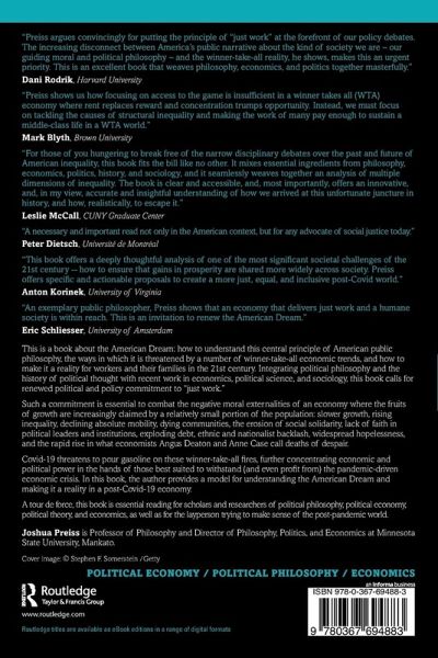 This is a book about the American Dream: how to understand this central principle of American public philosophy, the ways in which it is threatened by a number of winner-take-all economic trends, and how to make it a reality for workers and their families in the 21st century. Integrating political philosophy and the history of political thought with recent work in economics, political science, and sociology, this book calls for renewed political and policy commitment to "just work." Such a commitment is essential to combat the negative moral externalities of an economy where the fruits of growth are increasingly claimed by a relatively small portion of the population: slower growth, rising inequality, declining absolute mobility, dying communities, the erosion of social solidarity, lack of faith in political leaders and institutions, exploding debt, ethnic and nationalist backlash, widespread hopelessness, and the rapid rise in what economists Angus Deaton and Anne Case call deaths of despair. Covid-19 threatens to pour gasoline on these winner-take-all fires, further concentrating economic and political power in the hands of those best suited to withstand (and even profit from) the pandemic-driven economic crisis. In this book, the author provides a model for understanding the American Dream and making it a reality in a post-Covid-19 economy. A tour de force, this book is essential reading for scholars and researchers of political philosophy, political economy, political theory, and economics, as well as for the layperson trying to make sense of the post-pandemic world.