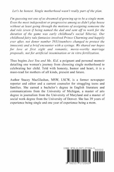 Just You and Me, Kid is a poignant and personal memoir detailing one woman's journey into single motherhood. Told with honesty, humor and heart, it is a must-read for mothers of all kinds, present and future.
