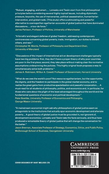 The current global-justice literature starts from the premise that world poverty is the result of structural injustice mostly attributable to past and present actions of governments and citizens of rich countries. As a result, that literature recommends vast coercive transfers of wealth from rich to poor societies, alongside stronger national and international governance. Justice at a Distance, in contrast, argues that global injustice is largely home-grown and that these native restrictions to freedom lie at the root of poverty and stagnation. The book is the first philosophical work to emphasize free markets in goods, services, and labor as an ethical imperative that allows people to pursue their projects and as the one institutional arrangement capable of alleviating poverty. Supported by a robust economic literature, Justice at a Distance applies the principle of noninterference to the issues of wealth and poverty, immigration, trade, the status of nation-states, war, and aid.