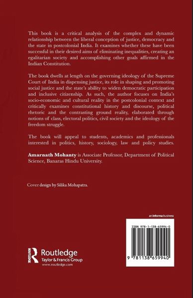 This book explores how the liberal conception of justice with all its ideological underpinnings is reflected in the framing and working of the Constitution of India, in the adoption of broader socio-economic objectives, in the functioning of judicial and state institutions, and in the formulation and implementation of development strategy. It analyses the dynamics of the relationship between justice, democracy and the state. The book studies the liberal conception of social justice and its sufficiency, and interrogates its performance and adequacy within the structural parameters and cultural conditions of postcolonial India. It provides an analytical exposition of how the borrowed and inadequate conception of liberal justice and democracy inherited from colonial past, and the espousal of the derivative developmental pattern based on modernist and constructivist paradigm, have together failed to achieve the modest target of justice enshrined in the Constitution. Interlinking justice, democracy and state, the book examines their operational dynamics in an integrated framework which has relevance for other Third World countries also because of socio-economic and cultural commonalites.