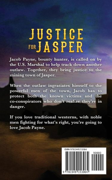 Jacob Payne, bounty hunter, tracks down another outlaw, bringing Justice to the town of Jasper.When the outlaw ingratiates himself to the power in the town, Jacob has to protect both the known victims and the man who won't admit he's a victim. This fast-paced traditional western is 12,000 words and can be read in one sitting!