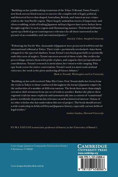 This book explores a cross-section of war crimes trials that the Allied powers held against the Japanese in the aftermath of World War II. More than 2,240 trials against some 5,700 suspected war criminals were carried out at 51 separate locations across the Asia Pacific region. This book analyzes fourteen high-profile American, Australian, British, and Philippine trials, including the two subsequent proceedings at Tokyo and the Yamashita trial. By delving into a large body of hitherto underutilized oral and documentary history of the war as contained in the trial records, Yuma Totani illuminates diverse firsthand accounts of the war that were offered by former Japanese and Allied combatants, prisoners of war, and the civilian population. Furthermore, the author makes a systematic inquiry into select trials to shed light on a highly complex - and at times contradictory - legal and jurisprudential legacy of Allied war crimes prosecutions.