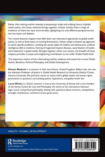 Rather than making another attempt at proposing a single and unifying theory of global health justice, this timely collection brings together, instead, scholars from a range of traditions to frame the issue more broadly, highlighting not only different perspectives but also key topics and debates.